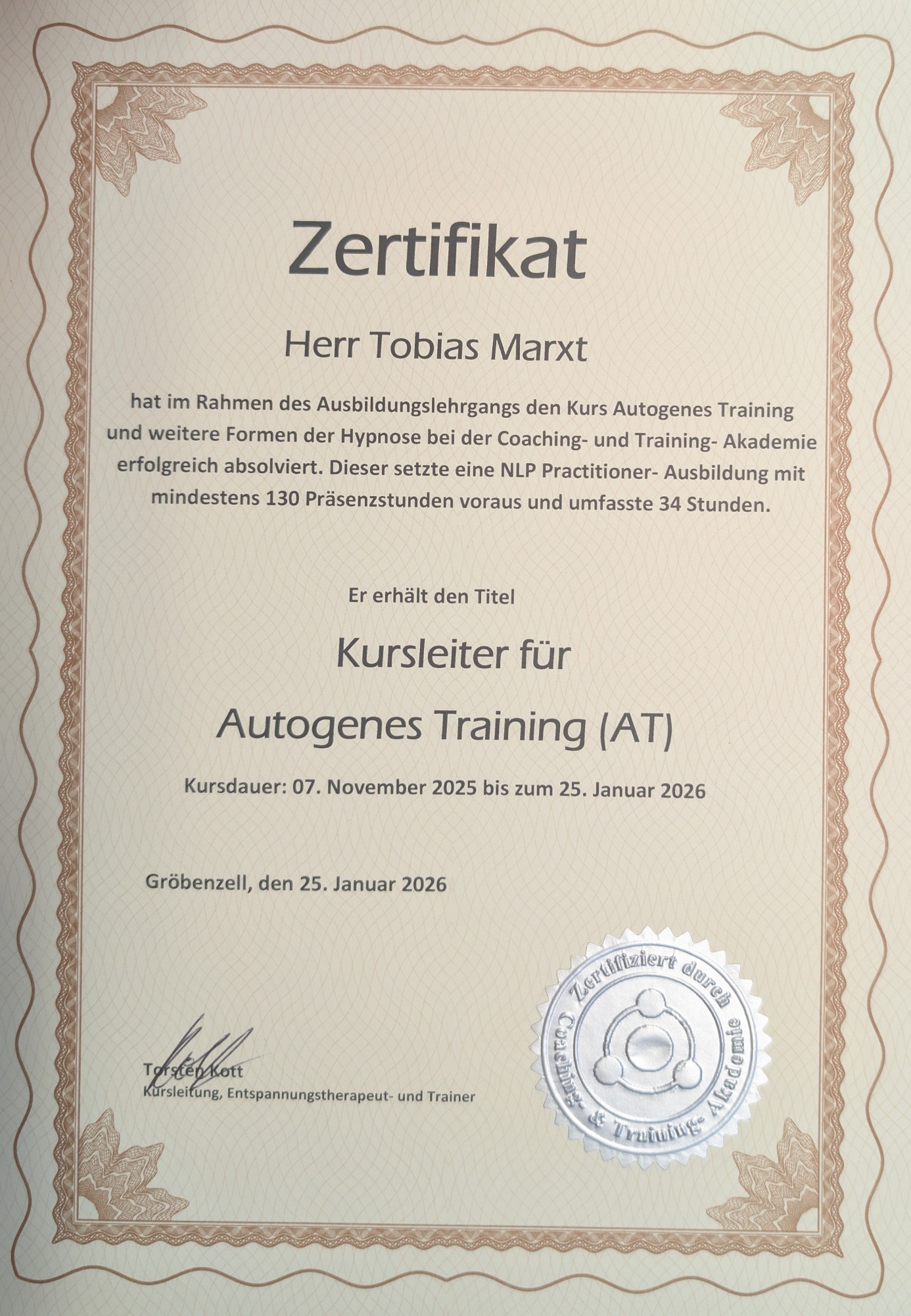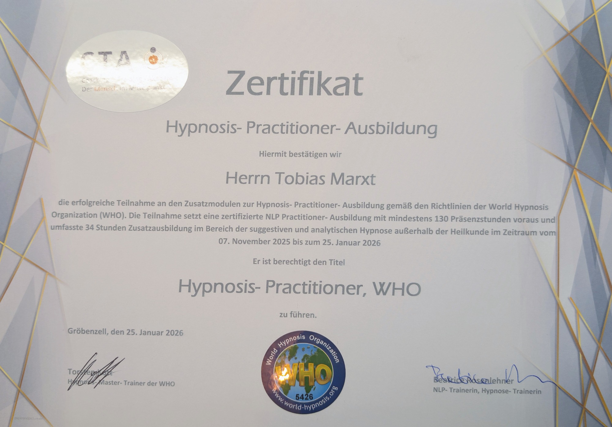 *Die aufgeführten Zertifikate beziehen sich ausschließlich auf meine Tätigkeit bei BE.WUSST. Andere Qualifikationen sind nicht aufgeführt